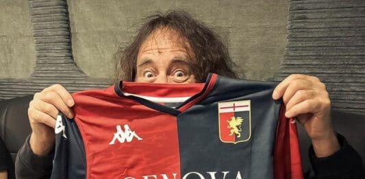 Genoa | Steve Harris, fondatore degli Iron Maiden, posa con la maglia rossoblù
