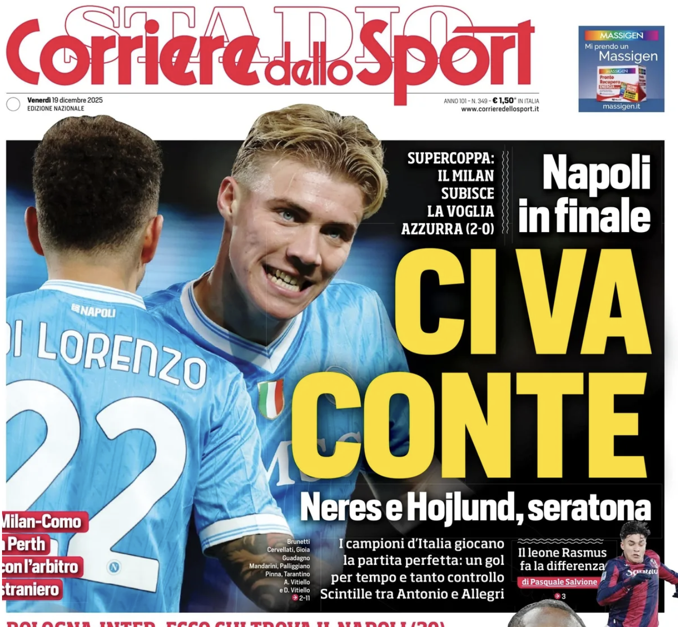 SECOLO XIX – “Un 2025 con poche gioie al Ferraris. De Rossi a caccia del bis con la Dea” titola questa mattina il Secolo XIX, che aggiunge: “Una vittoria in stagione, nel match col Verona in lotta per salvarsi, e sei nell’anno solare in uno stadio che ha tifosi da record. Dopo l’avvio negativo, DDR ha saputo riaccendere l’entusiasmo dei supporter. Colombo: “Marassi tornerà il nostro fortino“. Fronte campo, si parla del rientro di Østigard, ma della contemporanea perdita per nuovi problemi muscolari di Grønbæk e Cornet, che vanno ad aggiungersi a Messias e Cuenca. Approfondimento, poi, anche su Vitinha: “più forte del dolore, cerca gol e prestazioni da Grifo“. Infine, focus sull’inaugurazione del Genoa Store dell’Aeroporto (clicca QUI per saperne di più) e sui numeri della prima settimana del Genoa Store di Piazza Banchi. Oltre 250mila euro incassati e 6000 pezzi venduti.