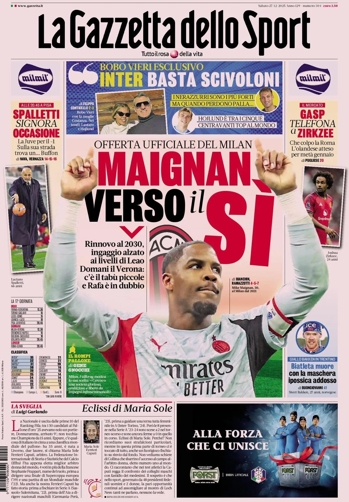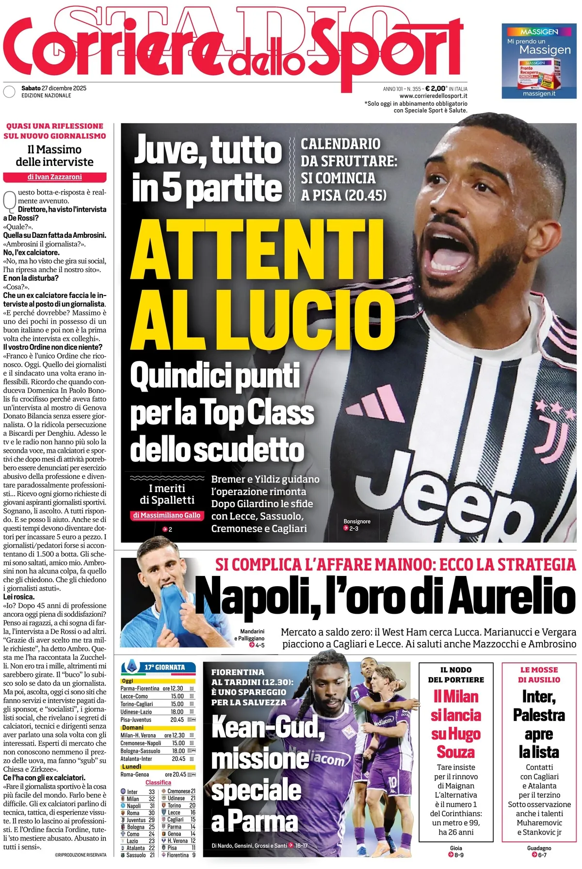 REPUBBLICA – “Genoa, che brividi per De Rossi. “Mai vissuto una vigilia così, lavoro per far perdere la Roma” titola stamane l’edizione genovese di Repubblica, che riparte dalle parole rilasciate a DAZN dal tecnico rossoblù nel giorno di Santo Stefano. Oggi, però, ci sarà la conferenza stampa alle ore 13,15. Viene dato per scontato tra i titolari il ritorno di Østigard, con Otoa che dovrebbe partire dalla panchina e la conferma di Marcandalli sulla destra.
