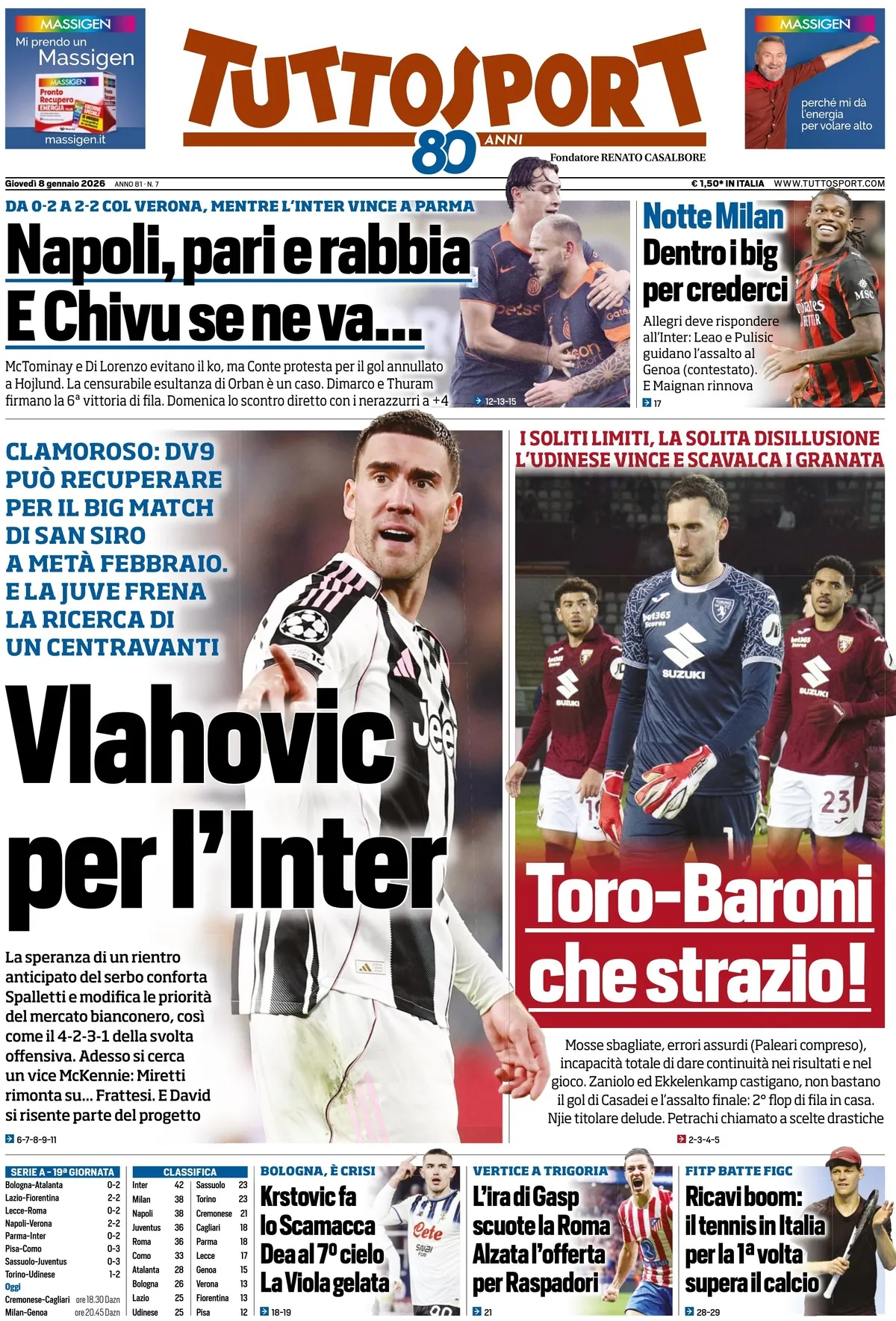 TUTTOSPORT – “Arriva Sucu per spegnere la contestazione” titola in chiusura di rassegna stampa Tuttosport, che propone questo titolo a cavallo tra quelle che sono le ultime in vista di Milan-Genoa, col presidente Sucu presente in tribuna, e il capitolo contestazione dei tifosi fuori dal “Signorini” con uno striscione che invita la società a fare mercato.