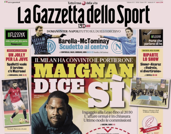 GAZZETTA DELLO SPORT – La Gazzetta dello Sport torna sul gesto di Pavlovic di scavare il dischetto del calcio di rigore prima della battuta di Stanciu e lo fa analizzando i due punti di vista. In casa Milan si parla di una cosa “di campo”, in casa rossoblù il più indispettito già a fine gara è stato De Rossi, che ha avuto un confronto immediato con Pavlovic. In ogni caso, la prova tv non potrà essere utilizzata per questo gesto, come spiega il quotidiano in rosa. “Le immagini televisive possono essere utilizzate in caso di condotta violenta non rilevata da arbitri o VAR o per l’uso di espressioni blasfeme allo stesso modo non riportate da arbitri e aiutanti” scrive il giornale sportivo. Fronte mercato, si legge: “Genoa, valzer in porta. Bento è a un passo, Leali gli cede il posto“.