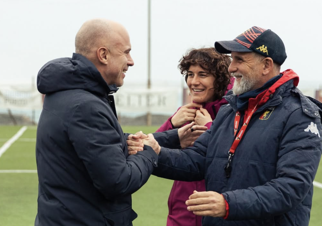 Ad accompagnarlo la vice allenatrice Viviana Schiavi e il preparatore dei portieri Massimo Lotti. A fare gli onori di casa la Responsabile del Genoa Women, Marta Carissimi, e mister De La Fuente assieme a tutto lo staff tecnico.