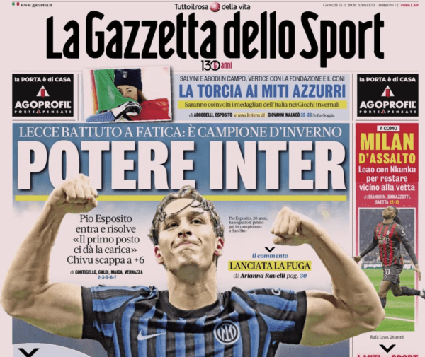 SECOLO XIX – “Leo re dei difensori goleador in Europa. “Doppia cifra con gli assist di Martin” titola stamane l’edizione del Secolo XIX, che torna sulla statistica dei gol segnati dal difensore norvegese, che si trova nei piani alti di questa speciale classifica. Østigard, comunque, non si pone limiti e punta ad arrivare in doppia cifra. Fronte mercato, l’approfondimento parla di un De Rossi che “spinge per Baldanzi” in attesa che la Roma lo liberi. “Si riapre la telenovela Bento” è quanto aggiunge il quotidiano, che non esclude possa riaprirsi la pista che porta al portiere brasiliano, ma inserisce in lizza per la porta anche il tedesco Hein dell’Arsenal, in prestito al Werder Brema.