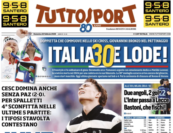 SECOLO XIX – “Mezzogiorno di fuoco. Genoa, assalto al Torino nel Ferraris bollente” titola stamane il Secolo XIX in preparazione, a sua volta, della sfida di quest’oggi all’ora di pranzo. “Match spartiacque per la salvezza: Baroni in affanno, De Rossi prova a inguaiarlo. Baldanzi pronto dal primo minuto, in staffetta con Messias. E la spinta di oltre 30mila tifosi” è quanto aggiunge il quotidiano, prima di dare conto della partita odierna del Genoa Primavera sul campo dell’Atalanta e, infine, della sconfitta interna del Genoa Women contro il Como Women che inguaia sempre di più la formazione di De La Fuente, che però rilancia: “La squadra non è morta“.