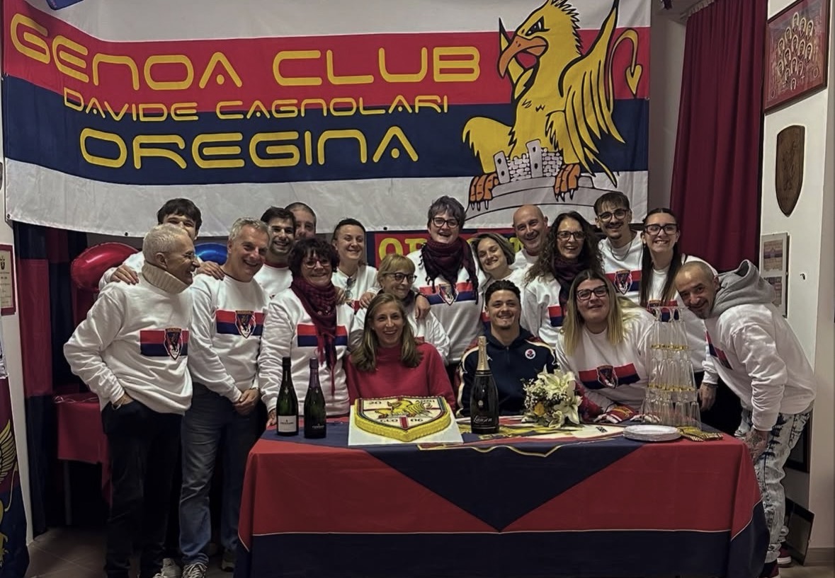 È stata un grandissimo successo la festa per i vent’anni del Genoa Club Oregina, svoltasi ieri dal tardo pomeriggio fino a sera. La hanno documentata e celebrata attraverso i loro analisi social proprio i membri del club di Oregina, che ha accolto non solo tifosi e tifose di ogni età, ma anche due tesserati rossoblù: Vitor Vitinha per la prima squadra maschile, Lisa Marchetti per la prima squadra femminile.