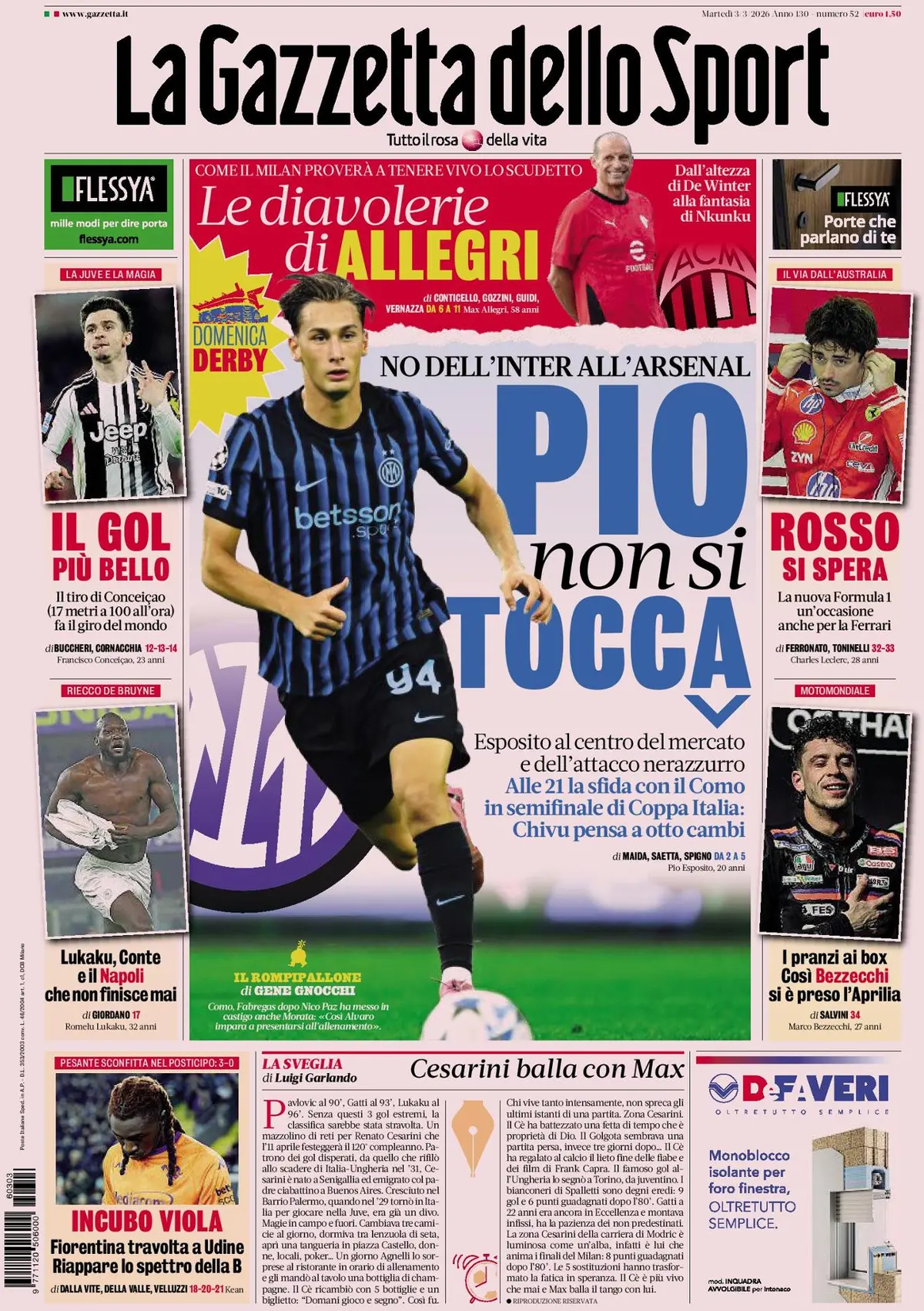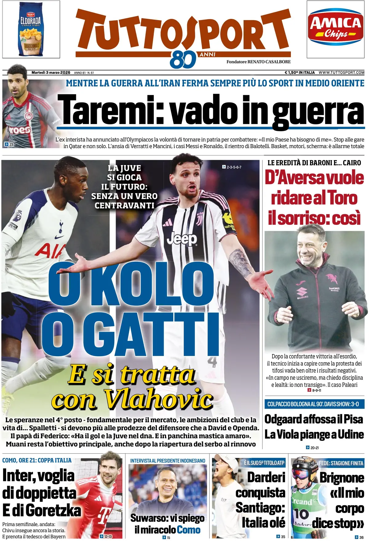 SECOLO XIX – Anche il Secolo XIX parla di un allarme per Baldanzi, che starebbe facendo i conti con un fastidio muscolare alla coscia sinistra, non quella infortunata a Roma e fresca di recidiva e ricaduta prima di arrivare al Genoa a gennaio. Viene messa in forte dubbio la sua presenza con la Roma, mentre tornerà sicuramente Otoa e ha buone chance di recupero anche NortonCuffy. Si segnala anche un’intervista a Walter Sabatini, ex dirigente della Roma che ha un rapporto molto forte con De Rossi. “De Rossi è il mio allenatore per sempre. Lui contro la Roma sembra incestuoso. I genoani sono gente innamorata, come Daniele. E il suo Grifone cresce, so che farà una grande partita. Attenzione, la lotta salvezza quest’anno sarà più drammatica” si legge in un passaggio dell’intervista.