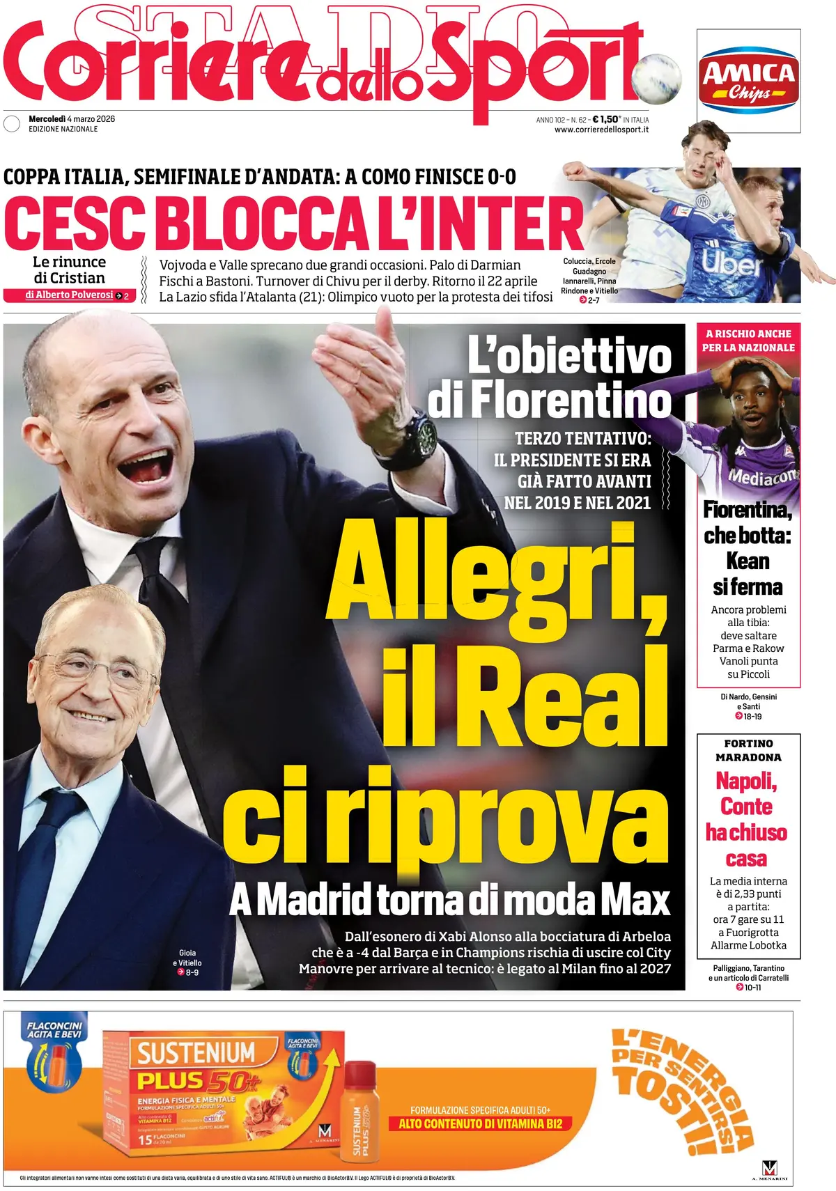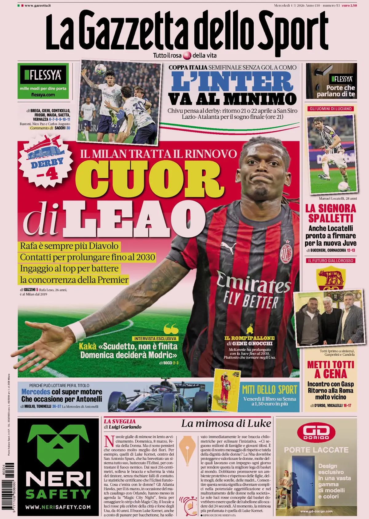CORRIERE DELLO SPORT – Il Corriere dello Sport parla di “tegola DDR” riferendosi allo stop di Baldanzi, che salterà la sfida contro i giallorossi, e aggiunge: “Non ci saranno i tifosi della Roma nel settore ospiti, non ci sarà neppure troppo spazio per i sentimenti: la classifica chiama, il Genoa ha bisogna di punti“.