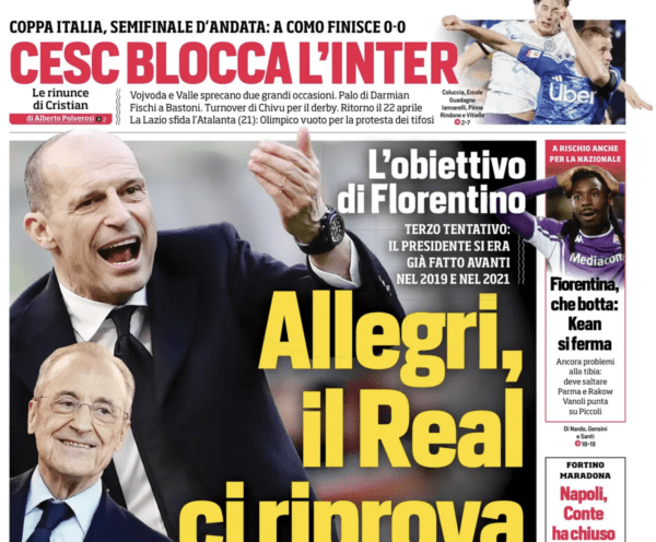 CORRIERE DELLO SPORT – Il Corriere dello Sport parla di “tegola DDR” riferendosi allo stop di Baldanzi, che salterà la sfida contro i giallorossi, e aggiunge: “Non ci saranno i tifosi della Roma nel settore ospiti, non ci sarà neppure troppo spazio per i sentimenti: la classifica chiama, il Genoa ha bisogna di punti“.