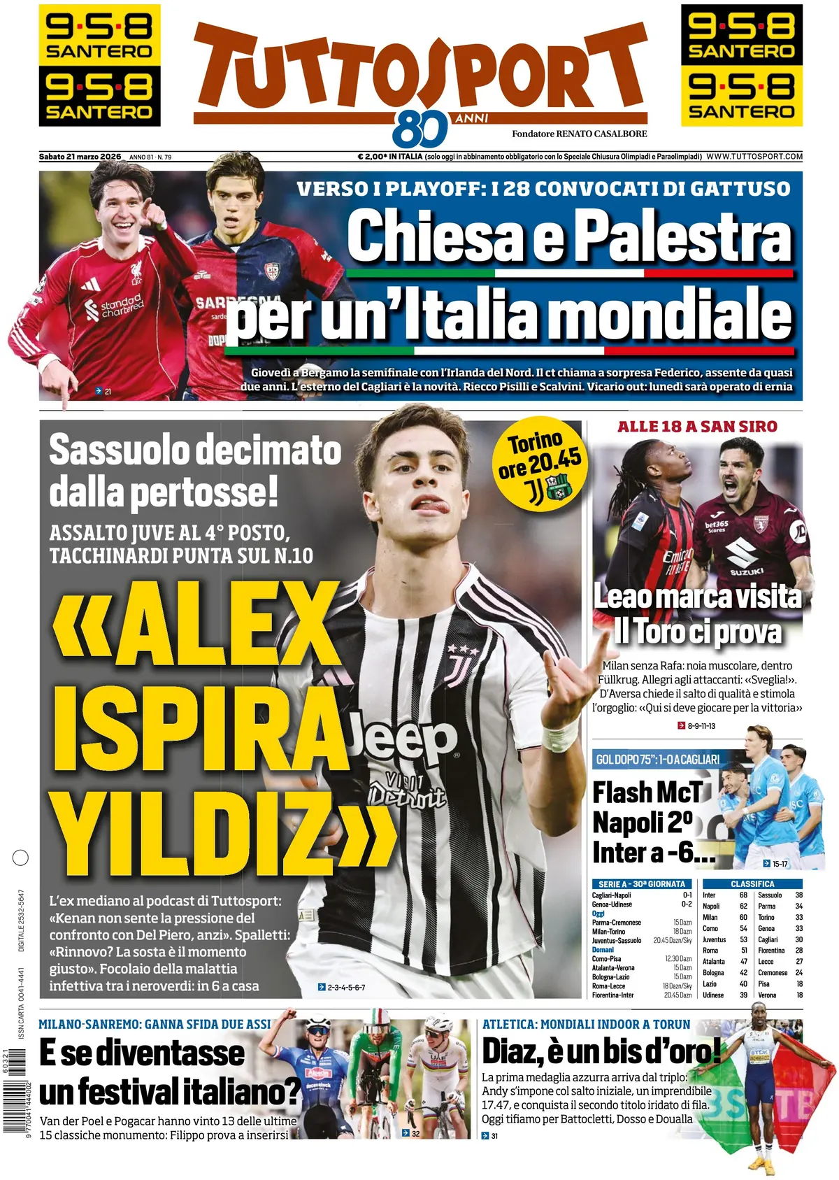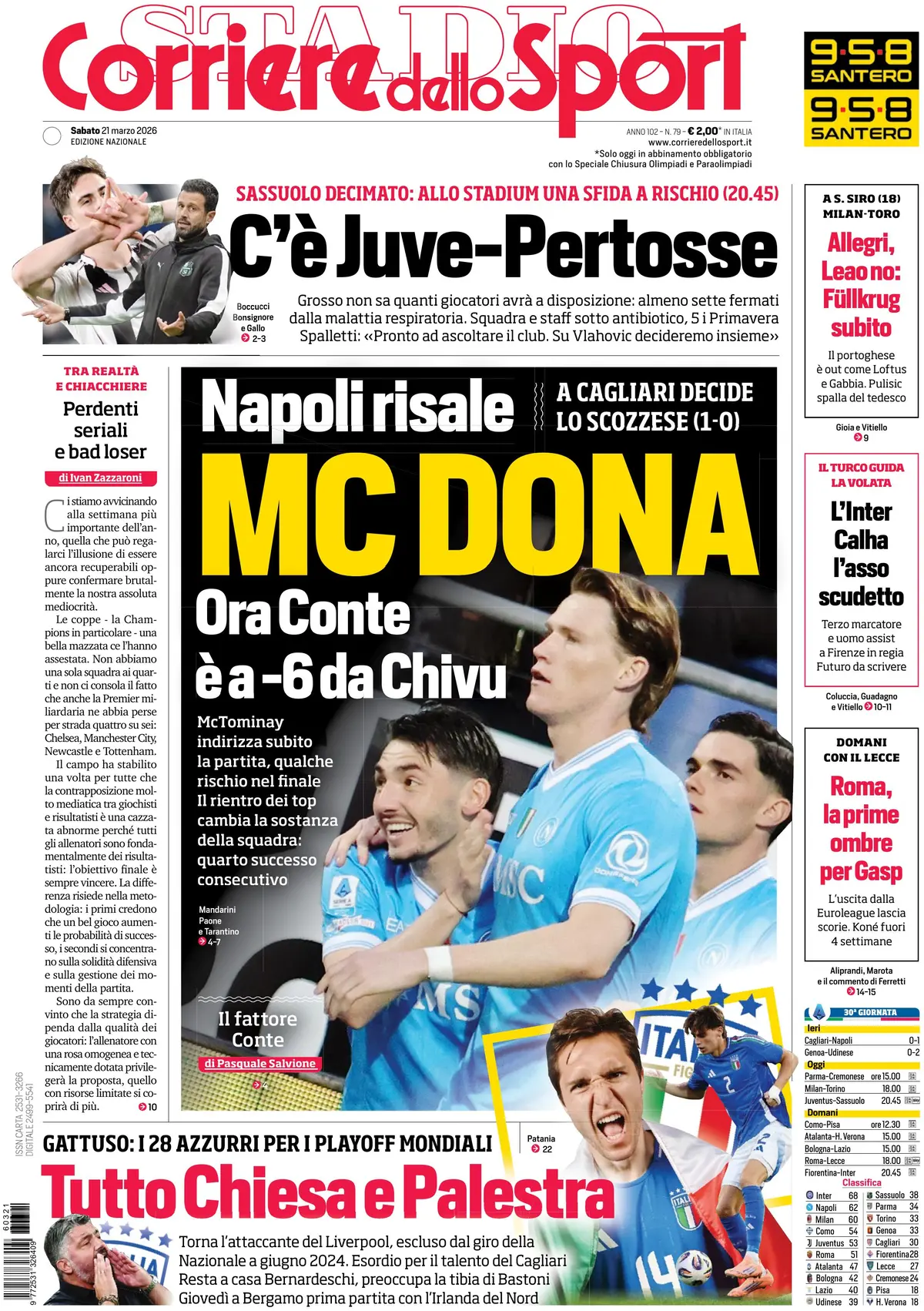 SECOLO XIX – “Il Genoa è sciupone e sfortunato. La cinica Udinese si rintana e colpisce” apre il Secolo XIX, che anticipa l’analisi della gara scrivendo: “I rossoblù dominano primo tempo e parte della ripresa: colpiti due legni. I bianconeri si svegliano all’improvviso e sono letali Decisivi Ekkelenkamp e Davis. Proteste per un rigore dato e negato dopo l’intervento del Var: solita difformità su casi simili“. Dopo un focus sulla partita di Malinovskyi, probabilmente il migliore in campo rossoblù, si passa alle parole di De Rossi e alle pagelle, che non risparmiano Collu. Voto cinque per “valutazioni difformi che lasciano tante perplessità“.
