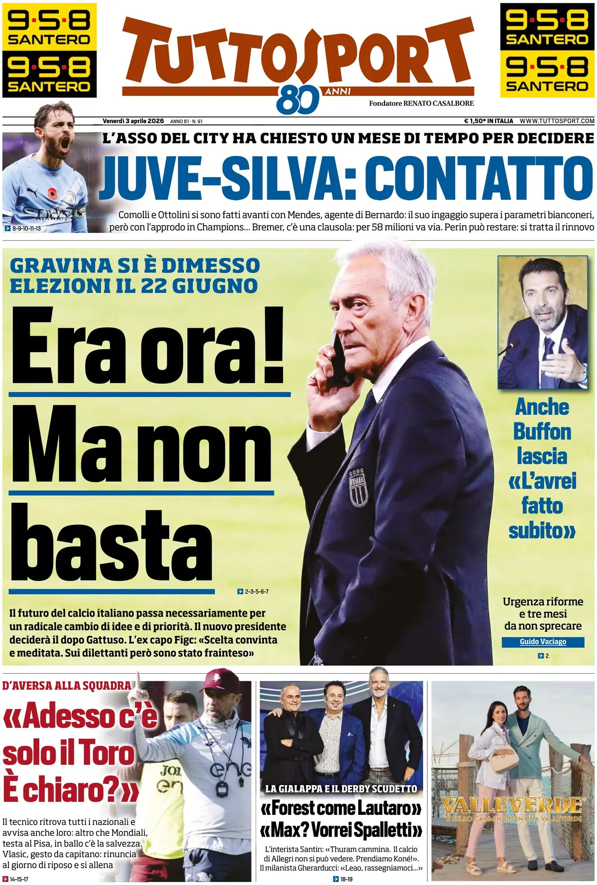 TUTTOSPORT – “De Rossi senza Cornet e Norton, ma con Baldanzi al top” titola Tuttosport, che rapidamente ripercorre le ultime ore in casa rossoblù, col rientro di tutti i nazionali e la possibilità, da oggi e con tre giorni pieni davanti, di preparare la sfida contro la Juventus. Una sfida che vede il Genoa non imporsi sui bianconeri, in Piemonte, dal 1991.