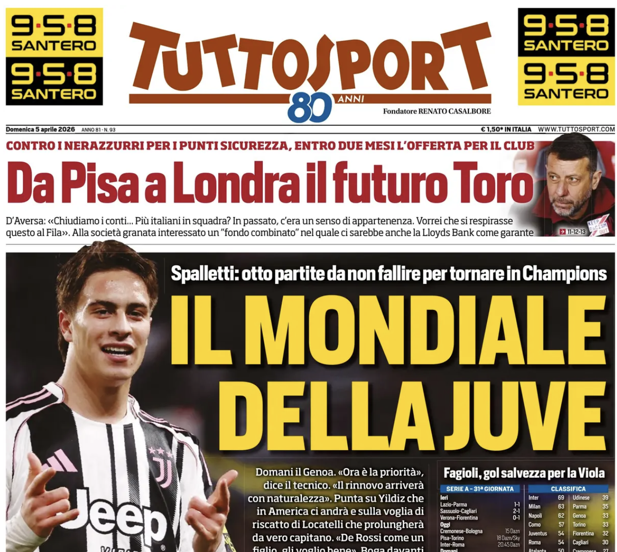 REPUBBLICA – “Genoa, impeto De Rossi. “Testa alta e coraggio, faremo soffrire la Juve” titola stamane l’edizione genovese di Repubblica, che opta per questa apertura con l’obiettivo di dare spazio alle dichiarazioni di De Rossi all’antivigilia di Juventus-Genoa (clicca QUI per leggere le sue parole). Baldanzi potrebbe giocare dall’inizio, mentre sono confermate le assenze di NortonCuffy e Cornet.