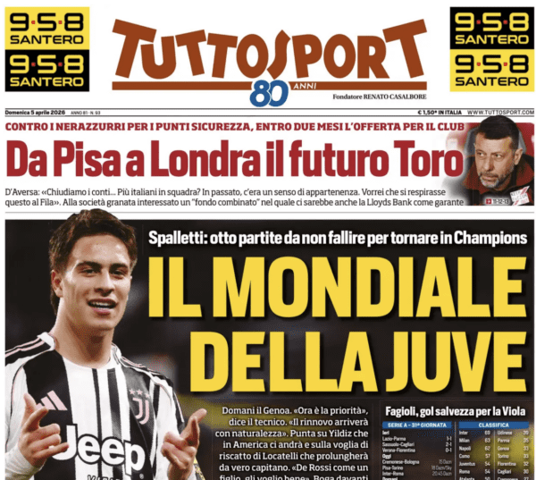 TUTTOSPORT – “Nemici mai, Spalletti come un familiare” titola, in chiusura di rassegna stampa, Tuttosport, che riparte dal forte legame che intercorre tra De Rossi e l’attuale tecnico della Juventus proprio per addentrarsi nelle dichiarazioni dell’allenatore rossoblù (clicca QUI per leggere le sue parole) a due giorni dalla sfida di Pasquetta. Confermata, anche in sede di conferenza, l’assenza di Norton–Cuffy.