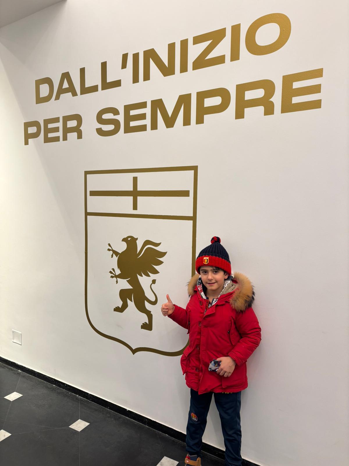 “Per il potere conferitomi dalla Storia, dai vicoli di questa città e dal leggendario spirito rossoblù, io ti battezzo Tifoso del Genoa. Da oggi, questa è la tua casa. Benvenuto in famiglia, Tobia!“