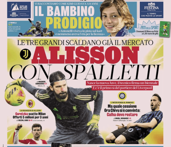 Nella parte di quotidiano destinata agli approfondimenti sportivi e calcistici si legge: “De Rossi e Grosso, i sopravvissuti della gloria azzurra di Berlino 2006“. De Rossi e Grosso vengono dipinti come gli unici reduci, ad alti livelli, di quella trionfale cavalcata a Berlino dopo i recenti passi falsi di Gilardino a Pisa, di Gattuso e Buffon in Nazionale e, qualche anno fa, di Pirlo, ora ad allenare negli Emirati Arabi. Per il quotidiano, per domenica contro il Sassuolo restano in dubbio Norton–Cuffy, Onana e Cornet, ieri ancora a parte. Da segnalare, infine, un’intervista all’ex rossoblù e neroverde Manfredini.