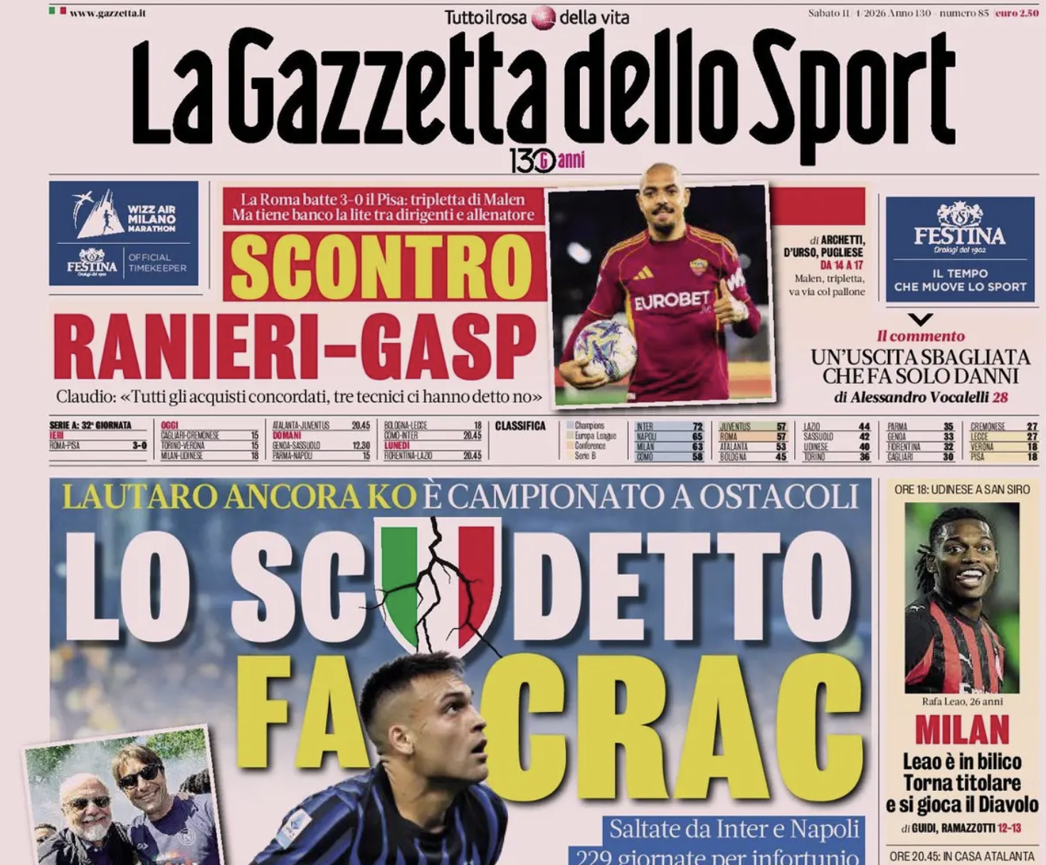 GAZZETTA DELLO SPORT – Nessun focus dedicato alle parole di mister De Rossi (clicca QUI per leggerle integralmente), ma sola una prima bozza delle probabili formazioni di Genoa e Sassuolo. Spazio a Baldanzi in mezzo al campo assieme a Malinovskyi e Frendrup, con Sabelli preferito a Martin sulla corsia di sinistra.