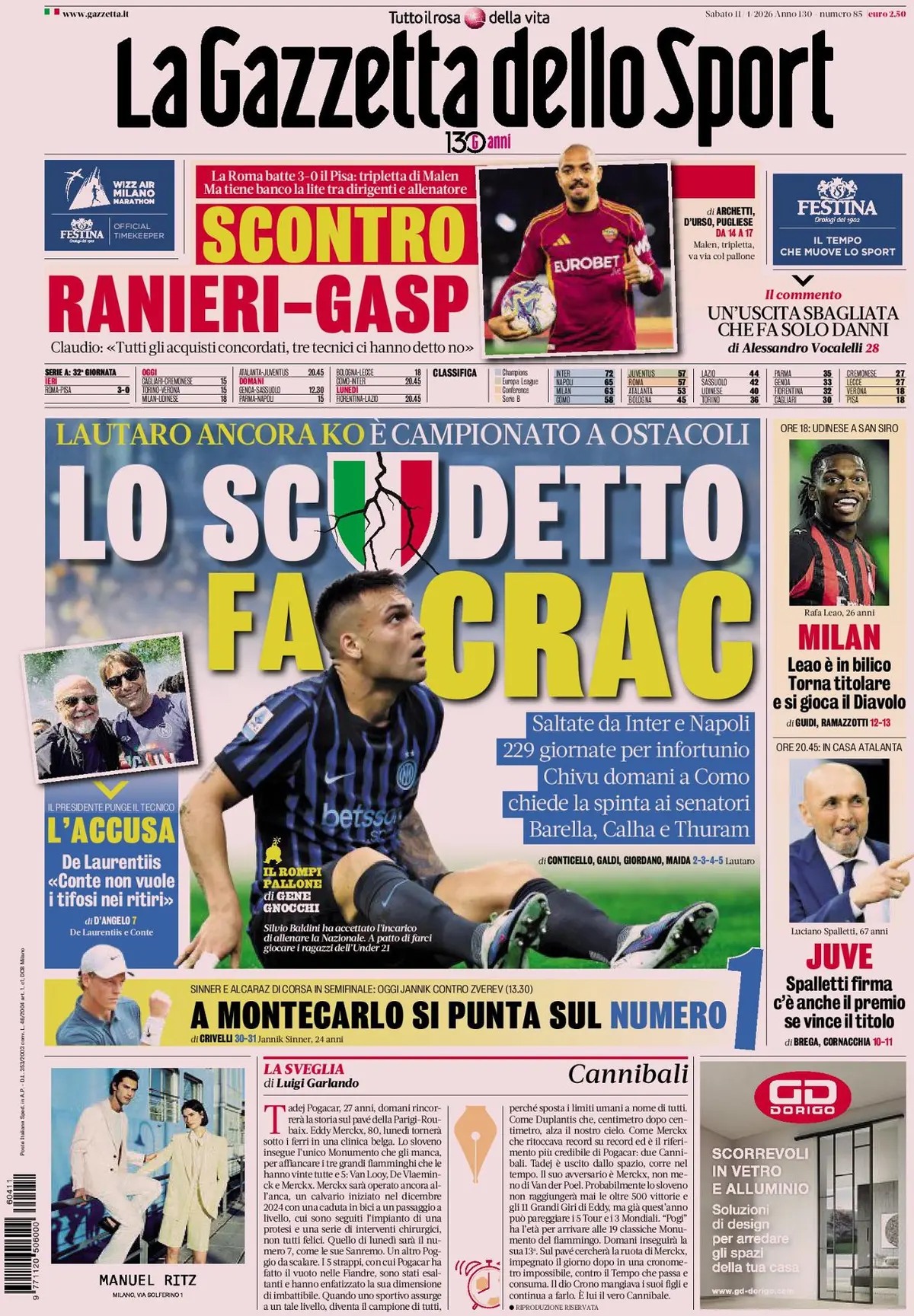 TUTTOSPORT – “De Rossi contro l’amico Grosso sceglie Baldanzi” titola questa mattina l’edizione di Tuttosport, che ripercorre rapidamente le dichiarazioni di mister De Rossi a due giorni dalla sfida contro il Sassuolo (clicca QUI per leggerle integralmente).