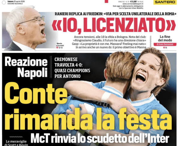 GAZZETTA DELLO SPORT – “De Rossi: “Lavoro per un Genoa da Conference” titola questa mattina la Gazzetta dello Sport, nel focus di avvicinamento alla partita con il Como, riprendendo la risposta del tecnico rossoblù ad una nostra domanda nella conferenza stampa di ieri (clicca QUI per leggerla integralmente). Viene poi dato spazio anche al tema del ritiro a Moena del luglio 2026 (clicca QUI per tutte le info).