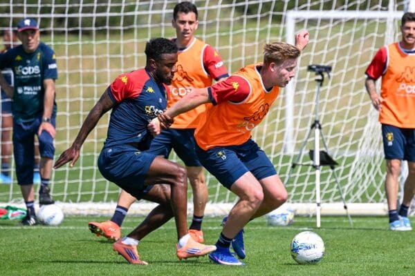 Alla vigilia della sfida tra Genoa e Como, il tecnico rossoblù De Rossi, che aveva accennato già al venerdì di qualche acciacco nella rosa, ha diramato la lista dei 25 convocati. Ritorna Cornet al pari dei tre squalificati Malinovskyi, Frendrup ed Ellertsson. Assenti, oltre a Norton–Cuffy, anche Baldanzi ed Ekuban per due risentimenti muscolari. Presenti anche i Primavera Doucoure, Ouedraogo, Grossi e Ndulue.